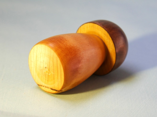 En Tilleul teinté, finition polish. Diam 7 cm, Haut 13 cm.