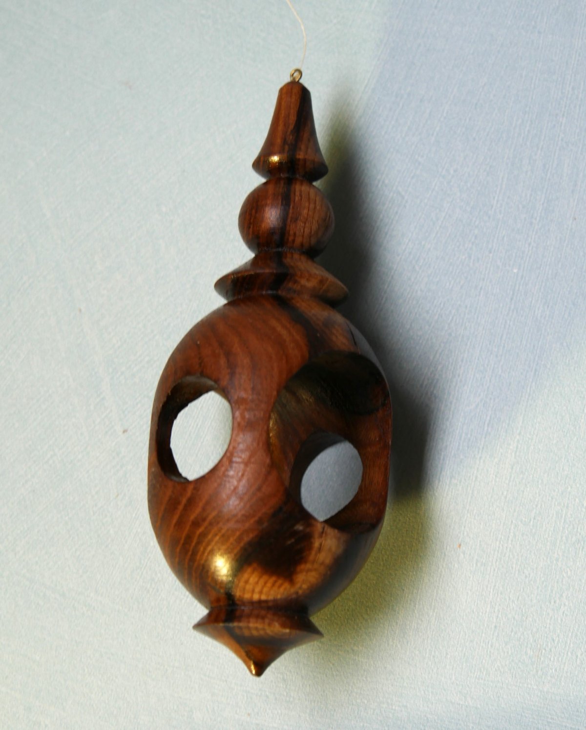 En Acacia, finition verni gomme laque. Diam 5 cm, Haut 12,7 cm.