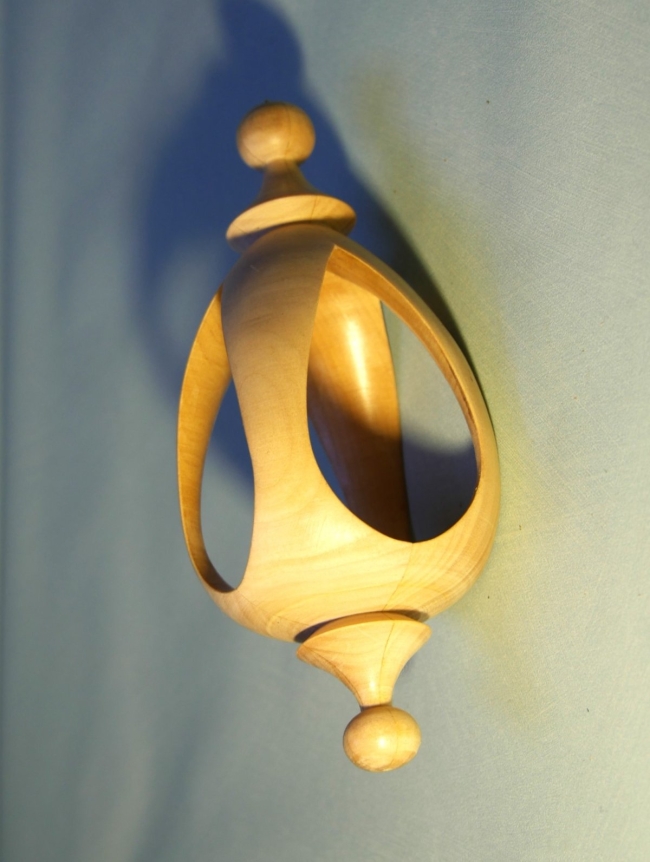 En Tilleul ciré. Diam 8,5 cm, Haut 18 cm. Vendu avec bougie led.