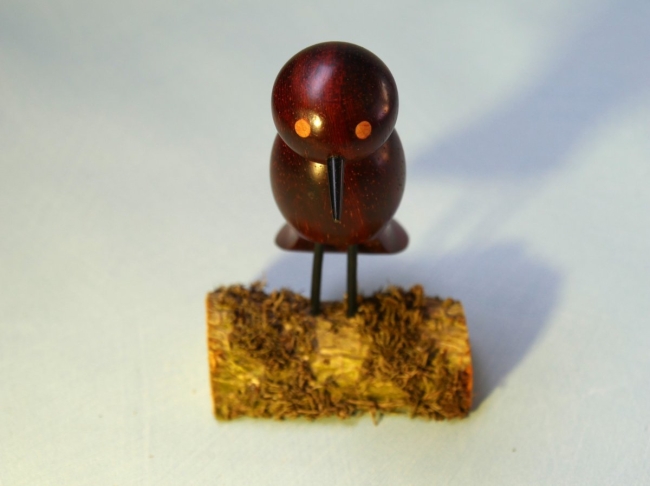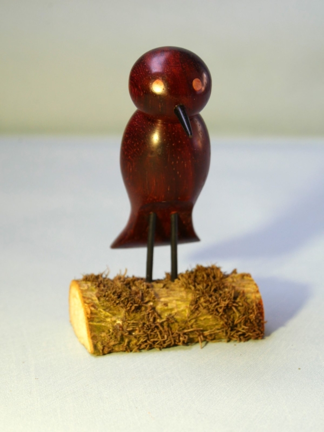 En Padouk, bec en ébène, finition polish. Support en lierre. Diam 3,5 cm, Haut 10 cm.