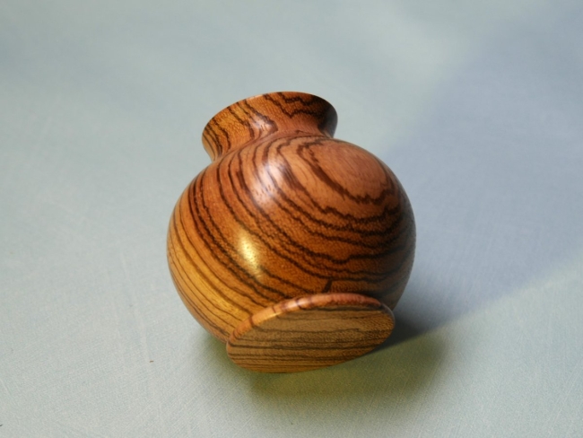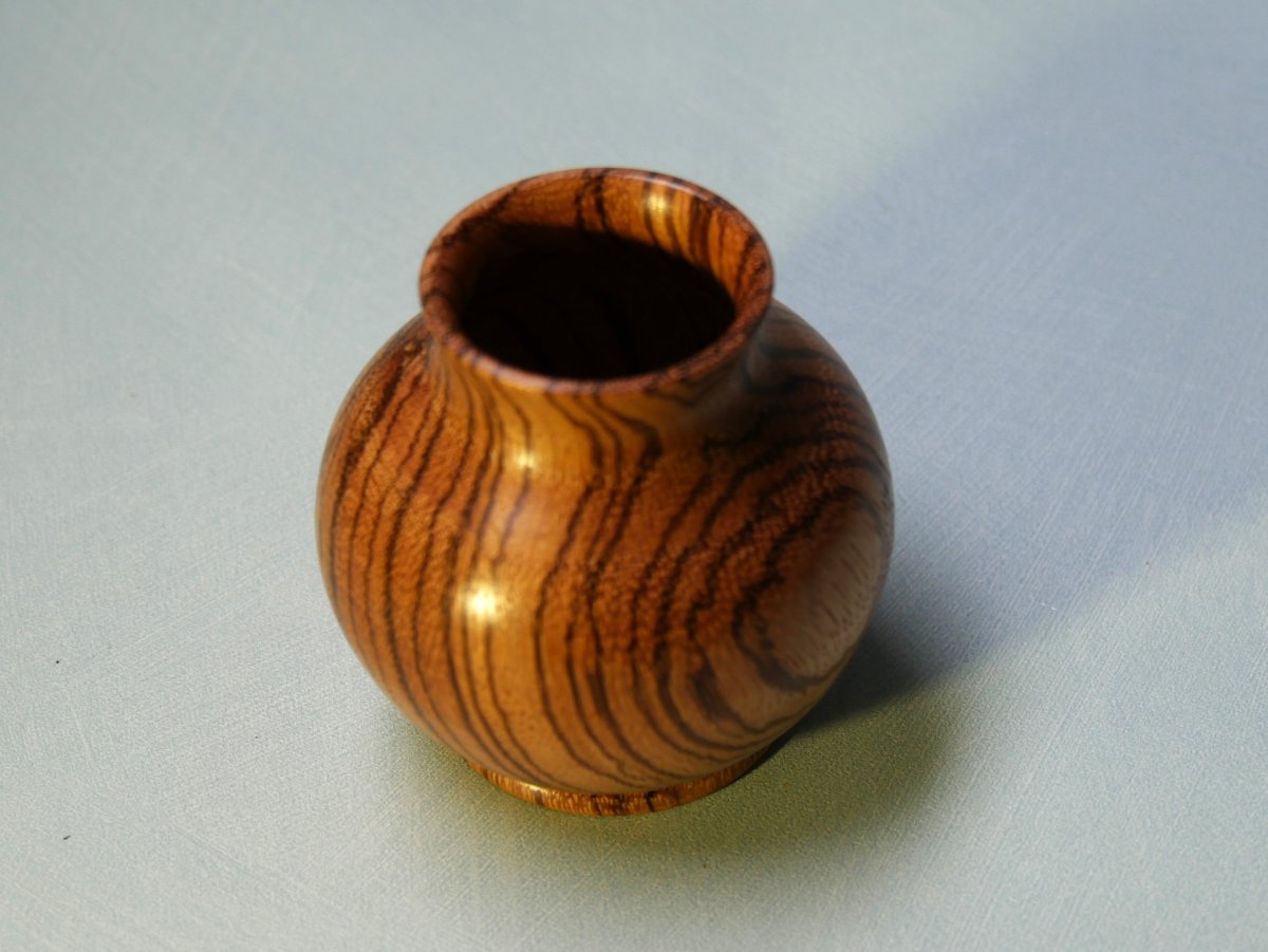 En Zébrano, finition polish. Ne convient pas pour recevoir des liquides. Diam 7,5 cm, Haut 7 cm.