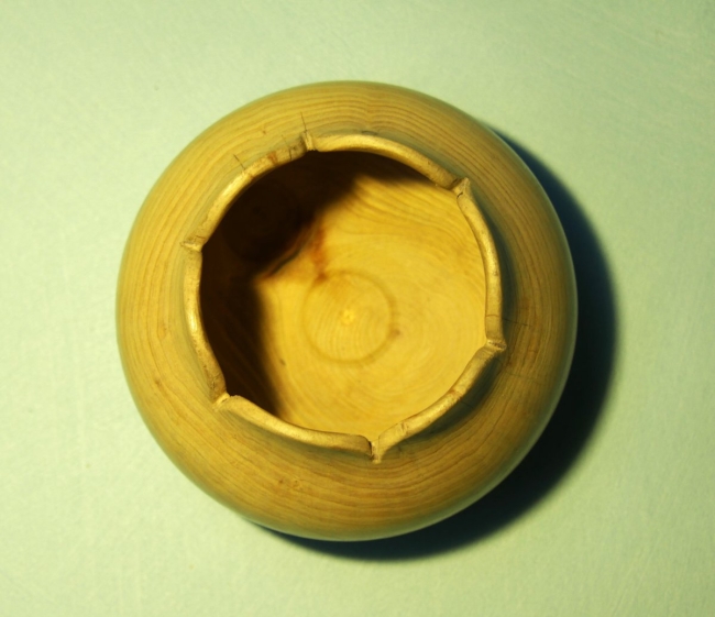 En Cyprès ciré. Ne peut recevoir de liquide. Diam 11,5 cm, Haut 8 cm.